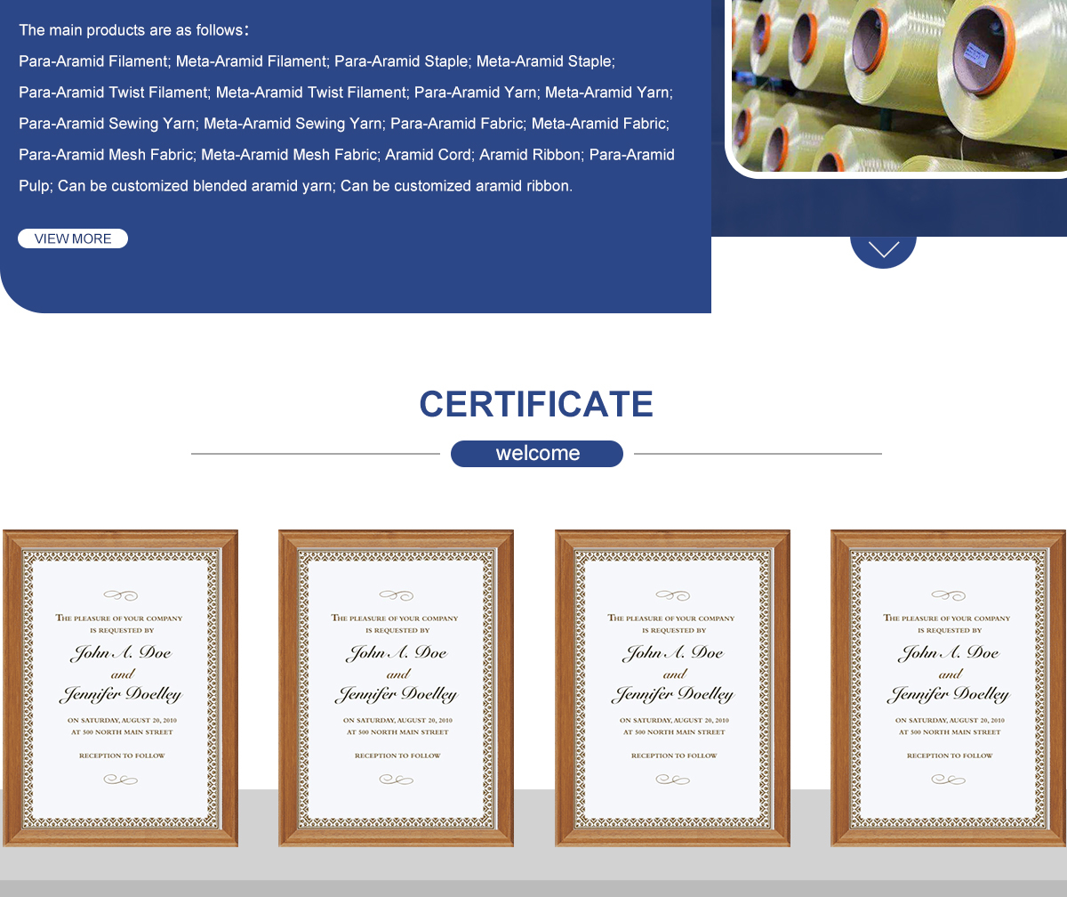 Prodotti principali: Fibra di aramide, filato di aramide, fettuccia di aramide, carta aramidica, polpa di aramide
